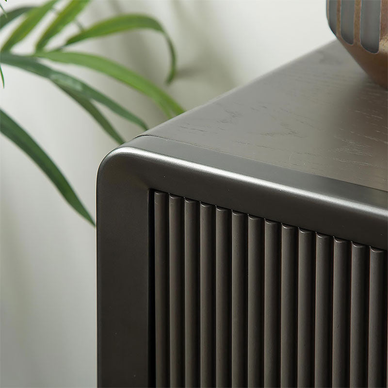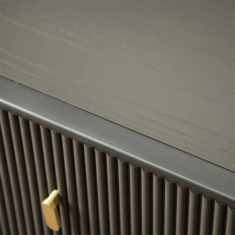 This elegant wooden chest of drawers would be perfect to add to any home interiors with its smoked grey finish with stunning champagne touches. The three equal sized drawers gives you a larger space for storing any household or any personal items you desire.bThe chest of drawers has a stunning smoked grey grooved finish to the top drawer which adds so much character to the over all piece.