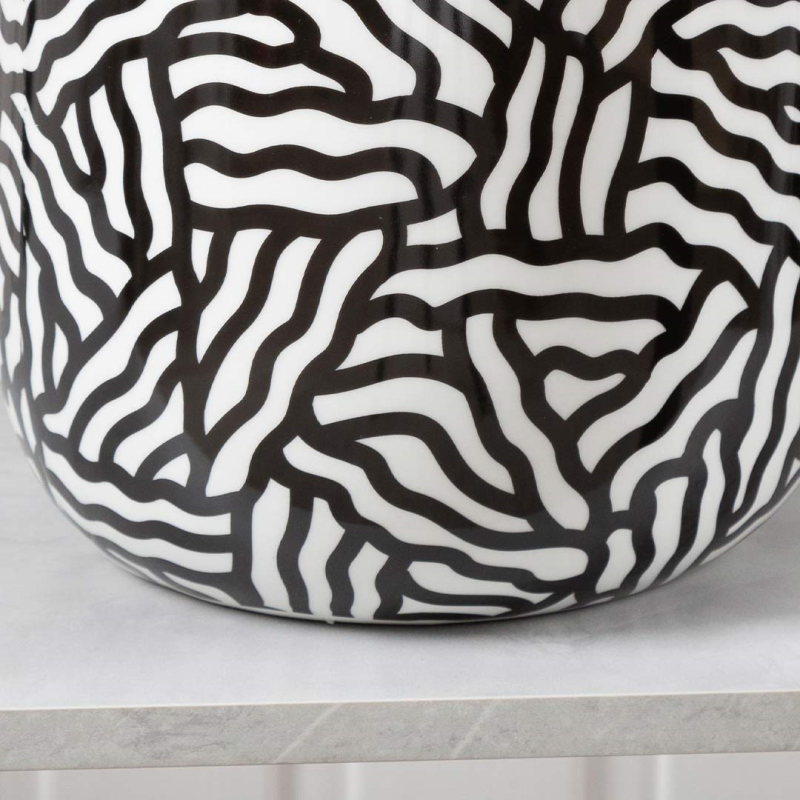 Add a stylish accent to your space with black and white ginger jars. Its bold contrasting colours and elegant design make it a perfect decorative piece for shelves, tables, or mantels. Ideal as a standalone décor item or part of a curated display, it brings contemporary sophistication to any room.