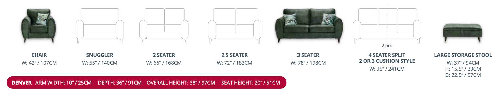 The Denver Sofa Range boasts elegance and luxury as well as versatility with its useful arm pocket storage. Upholstered in a choice of stunning jewel tones, it stands tall on brass/solid wooden legs that perfectly complements the design. Cushions are washable and reversible. Matching footstool available.