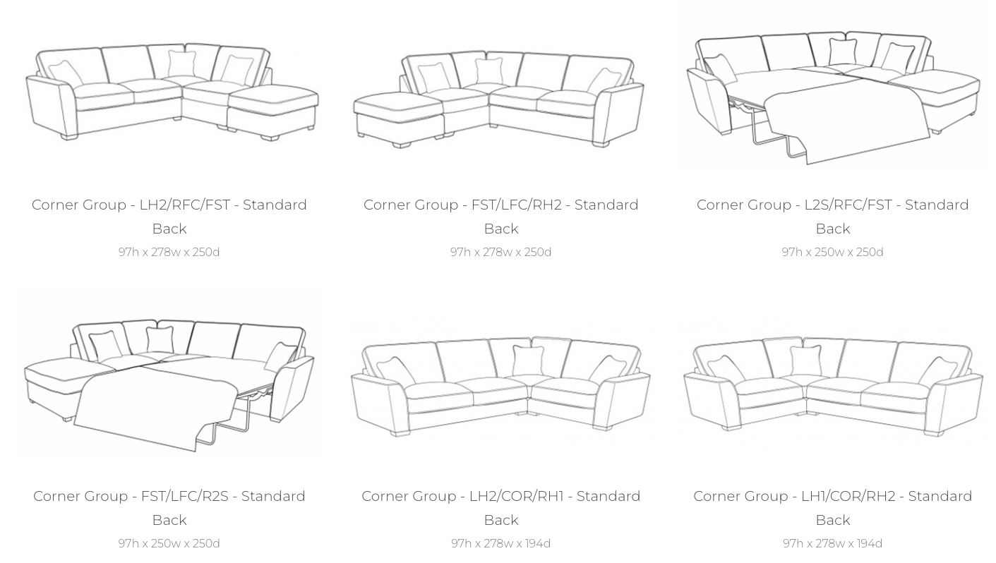 Corner sofas shown in Loki Silver fabric with scatter back cushions and beech feet and Barley Ivory fabric with standard back cushion and dark brown feet.