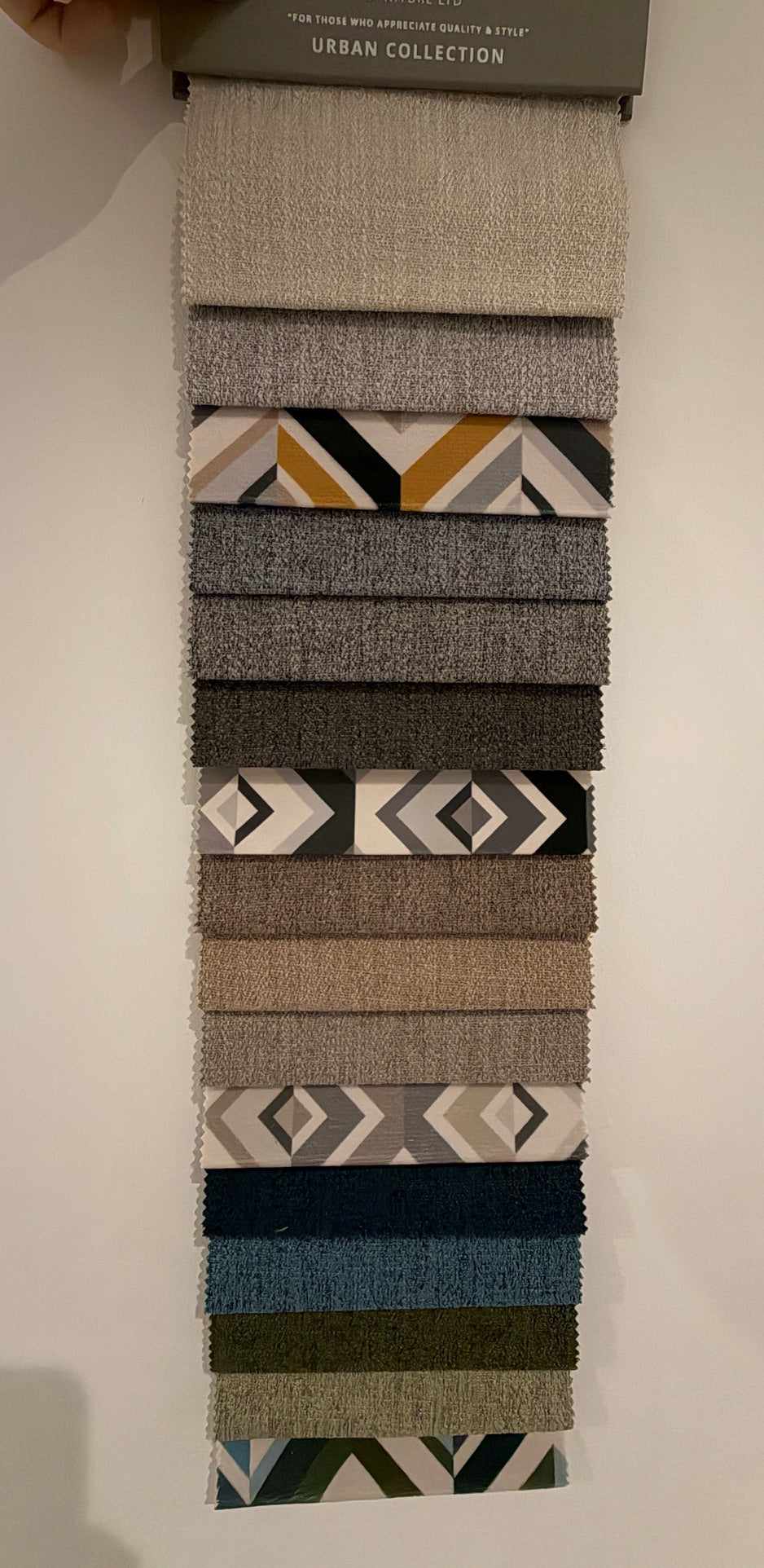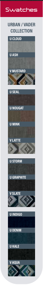 Snuggler shown in Urban Kale fabric and 3-seater sofa bed shown in Urban Cloud fabric and 3-seater shown in Urban Indigo fabric.